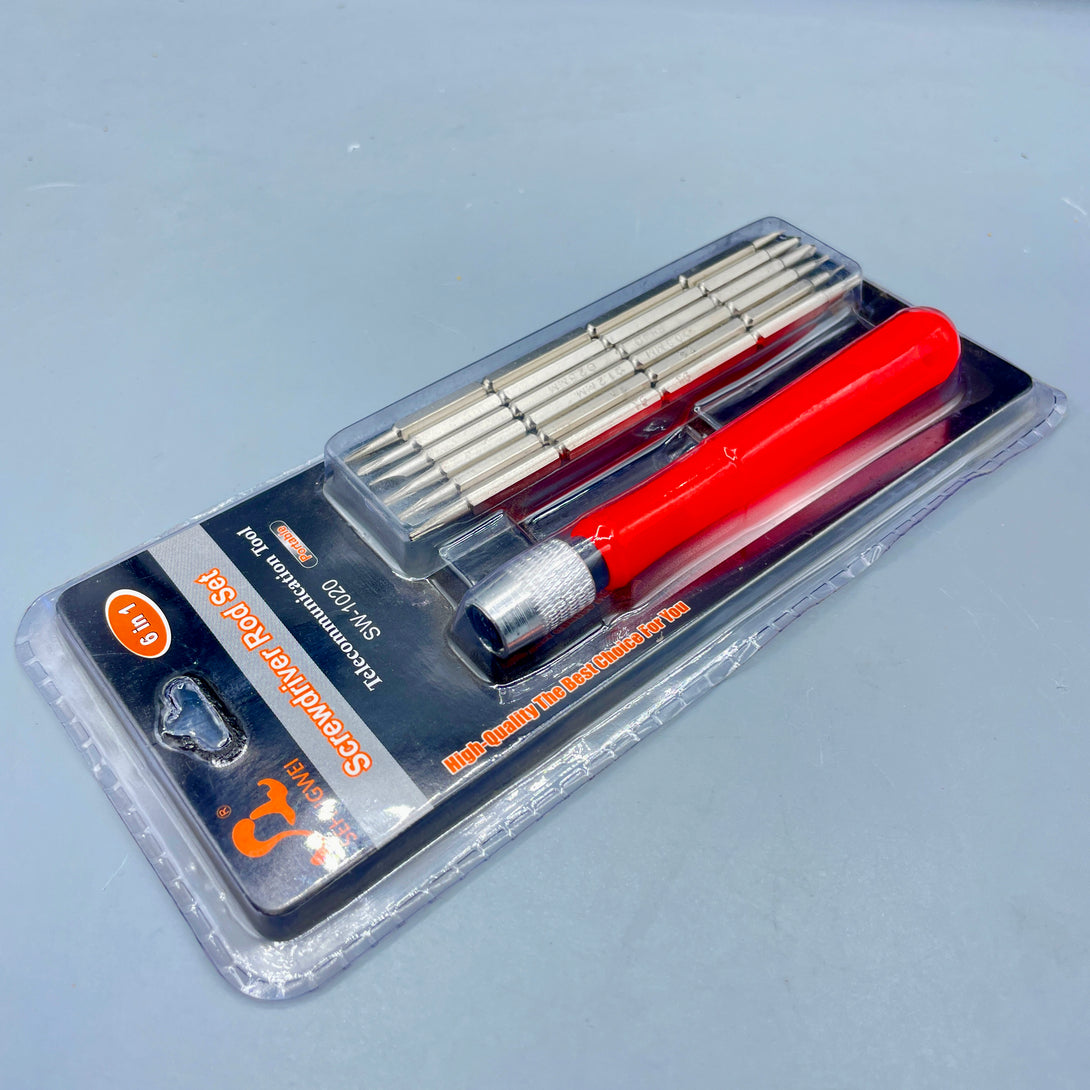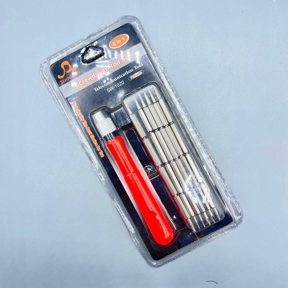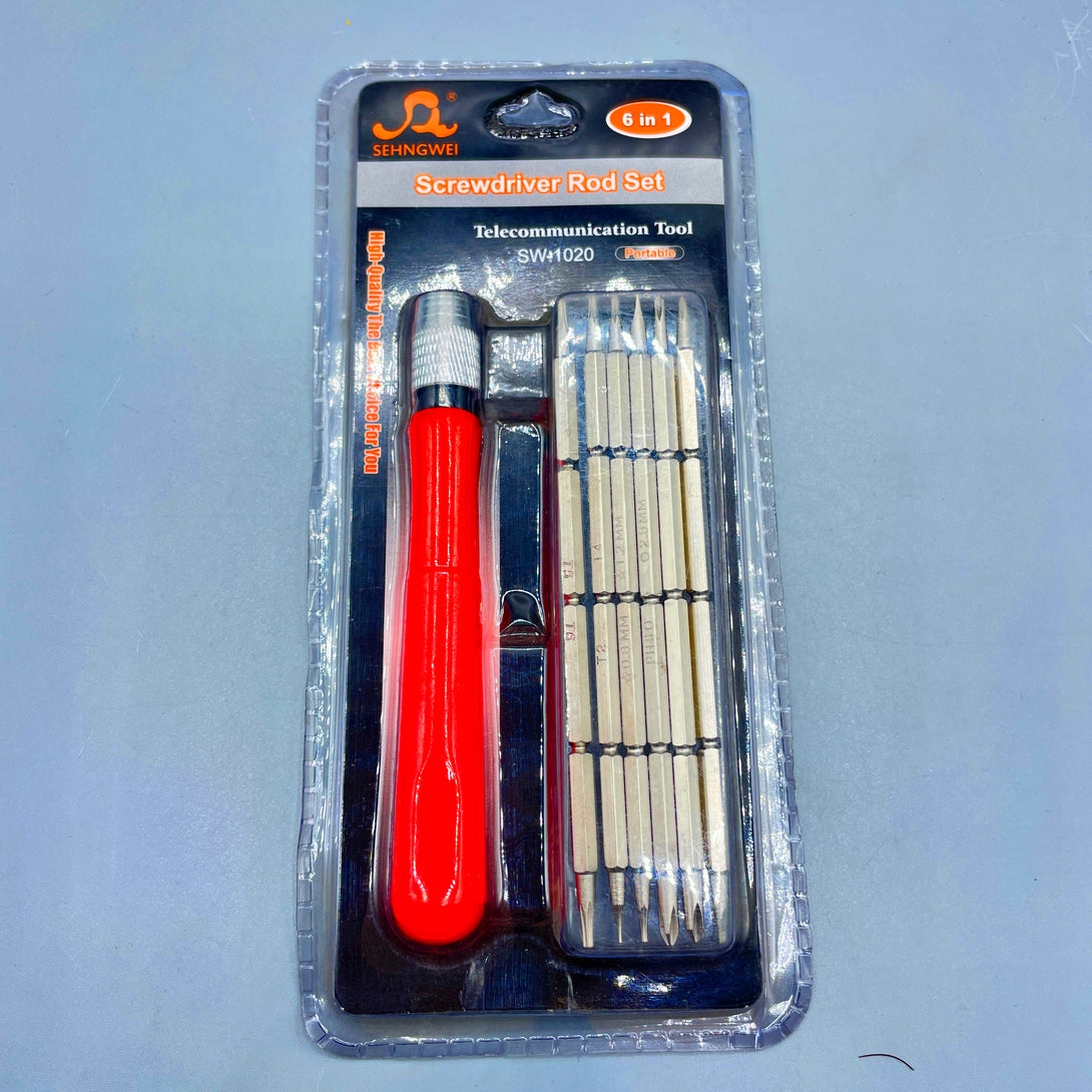 The SEHNGWEI SW-1020 6-in-1 Precision Screwdriver Rod Set is a versatile and reliable tool kit perfect for telecom technicians, electronics repair, and DIY enthusiasts. Designed for precision and durability, this compact set includes six interchangeable rods and a sturdy handle for comfortable, efficient use.