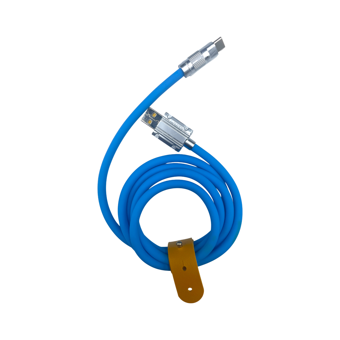 120W 6A Liquid Silicone Super Fast Charge USB Data Cable With LED Light