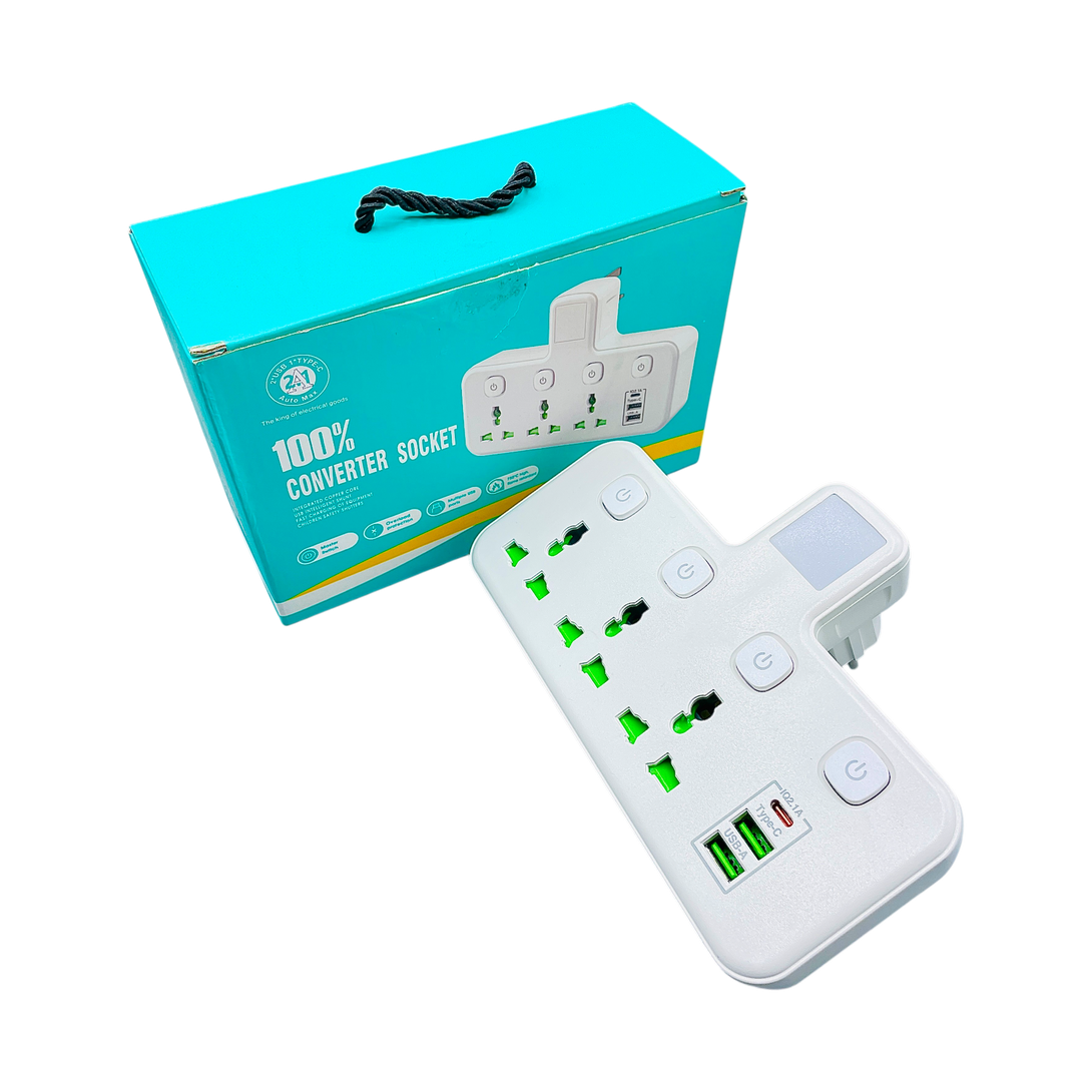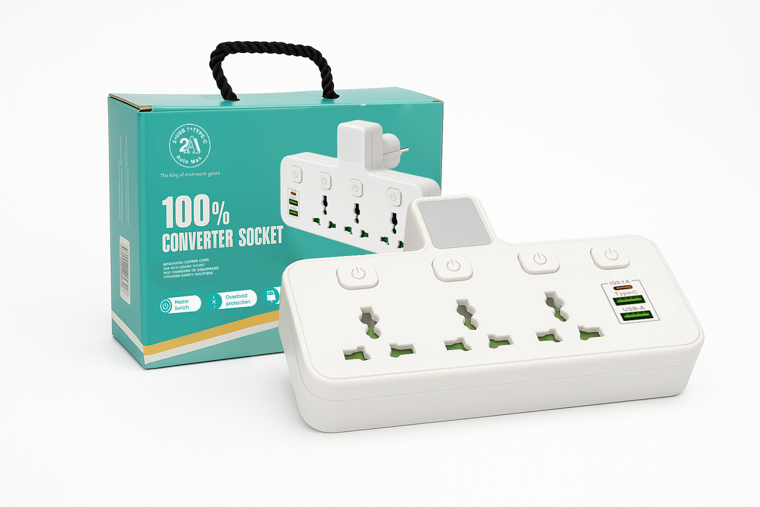 Upgrade your power experience with the 100% Converter Socket, designed for safety, speed, and convenience. Engineered with high-quality materials and intelligent features, it’s the perfect solution for homes, offices, and everyday use.