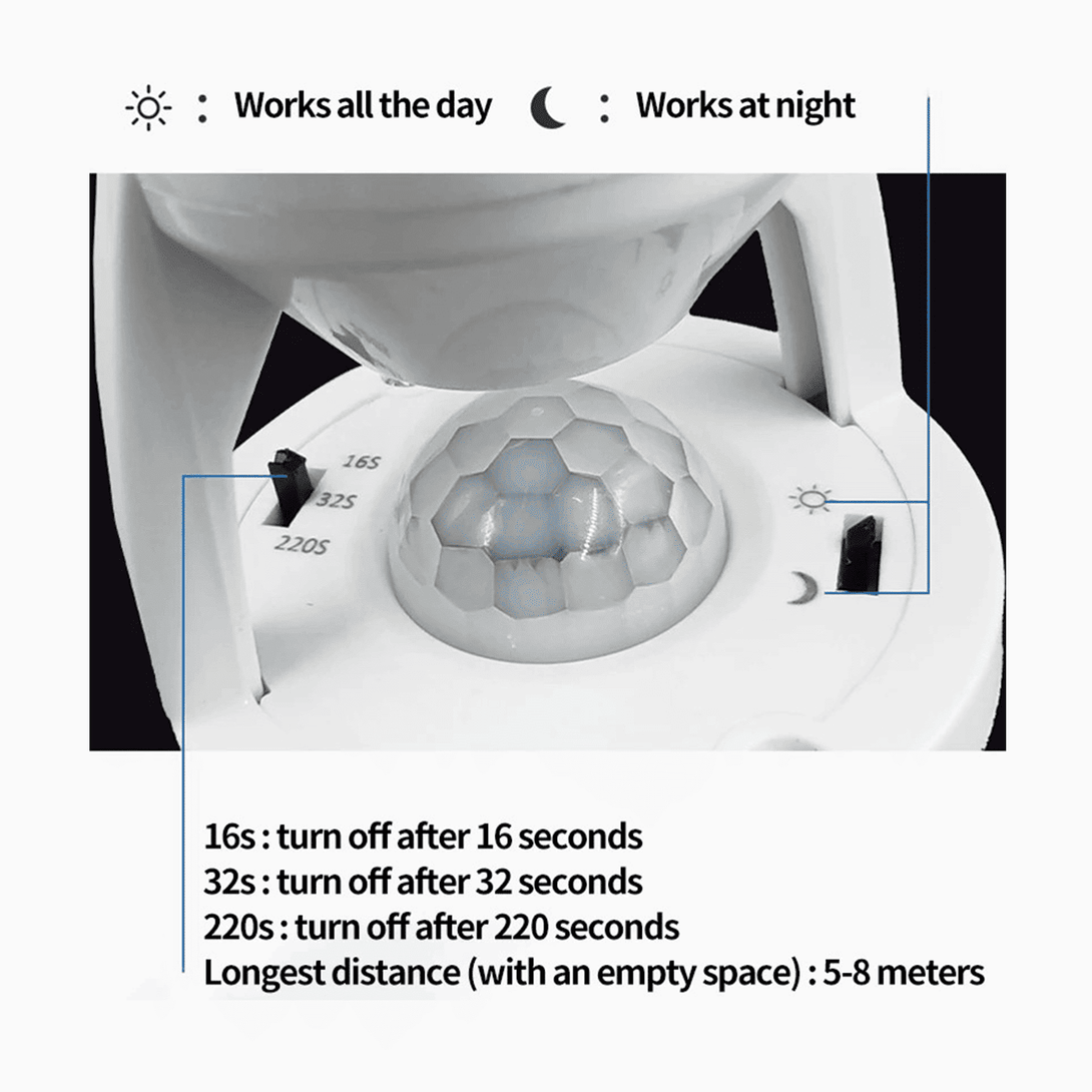 - Daylight Sensor: Prevents the light from turning on in daylight (optional feature).