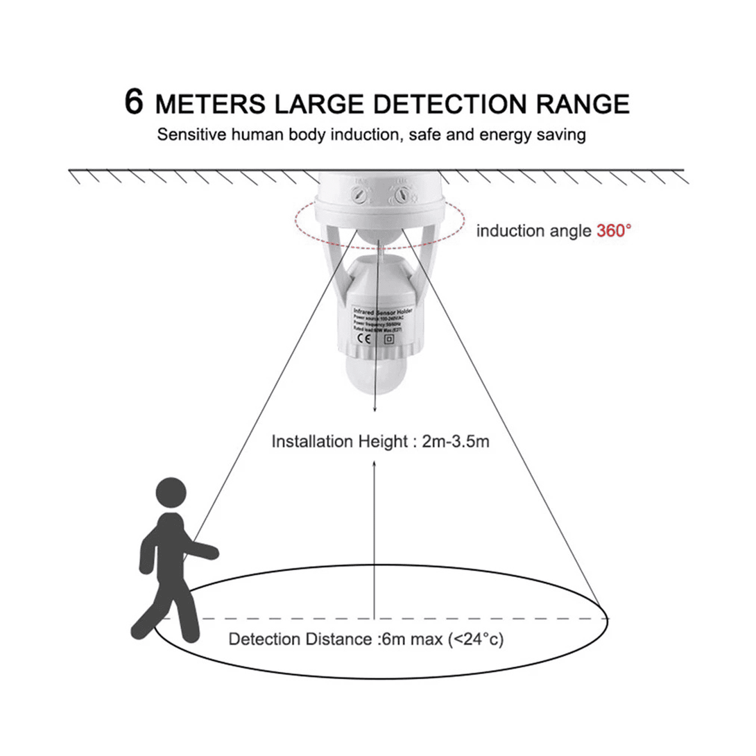 Infrared Sensor Bulb Holder, E27 PIR Motion Sensor Light Socket Adapter |