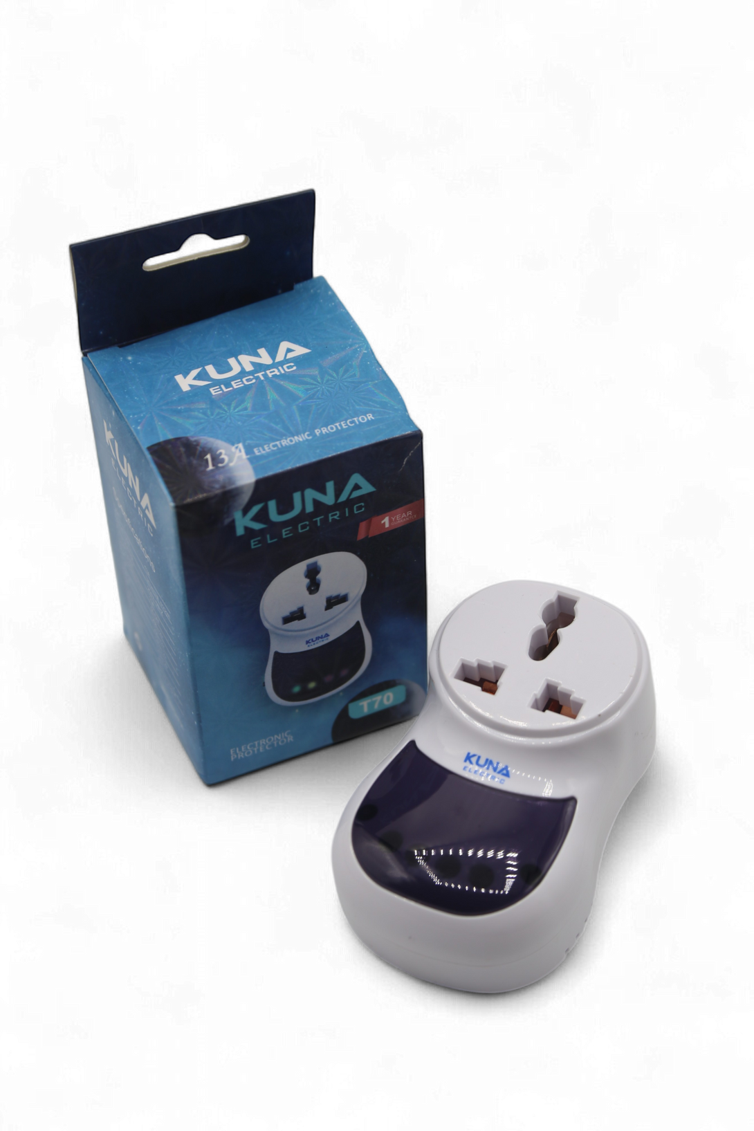 The KUNA Electric T70 Electronic Protector is a compact and intelligent voltage protection device, designed to shield your valuable appliances from power fluctuations, voltage spikes, and electrical surges. This plug-in protector is ideal for safeguarding electronics such as TVs, fridges, and computers in both residential and commercial settings.