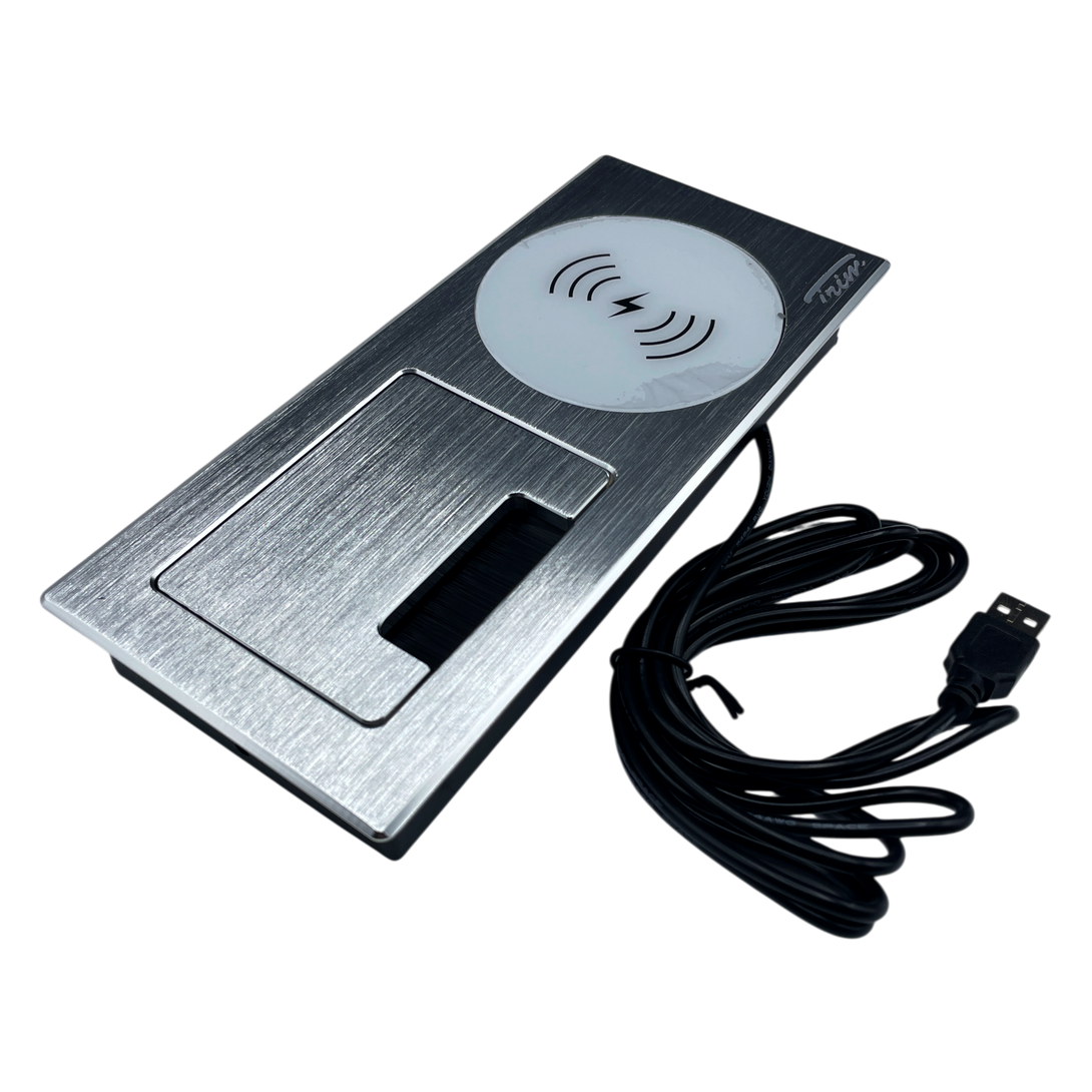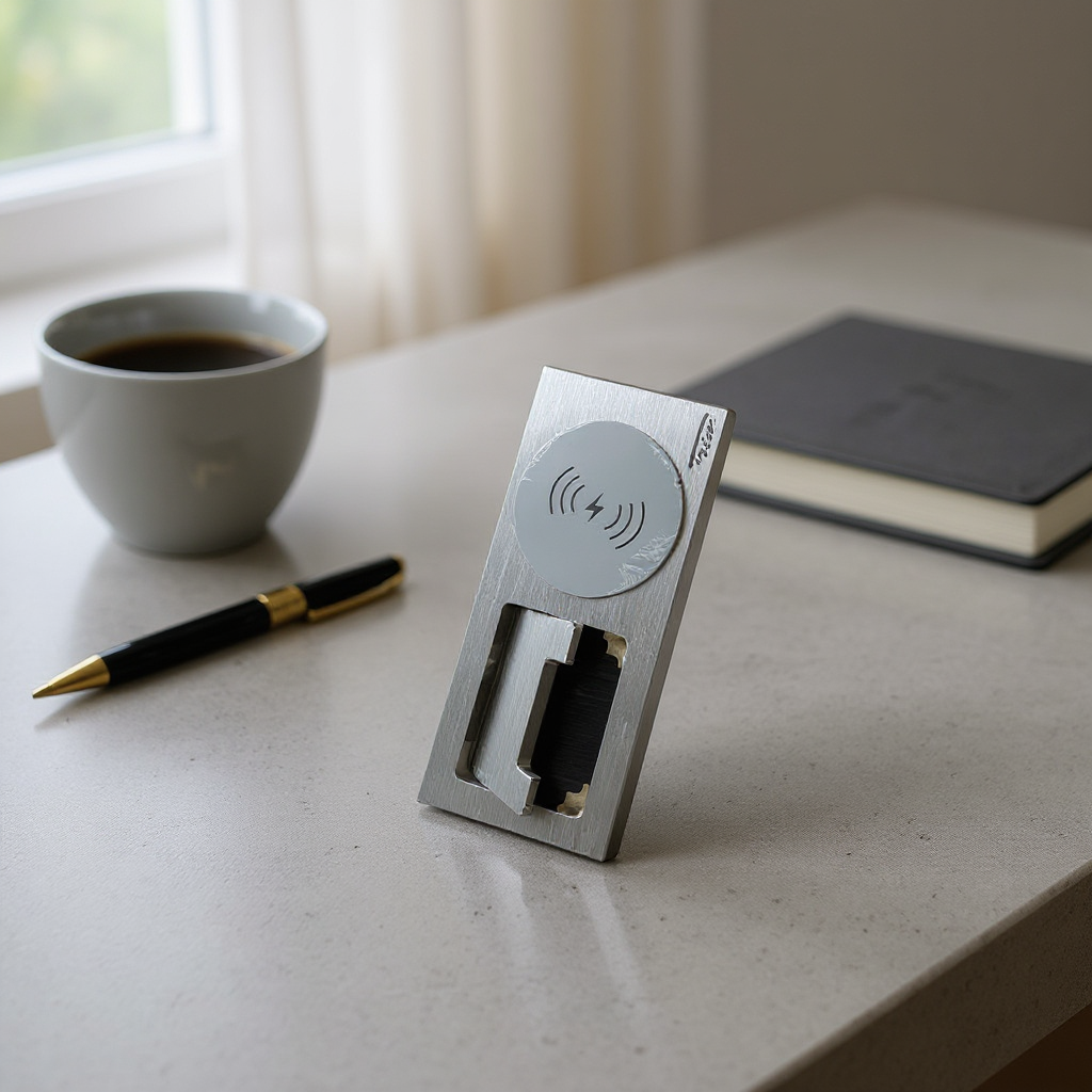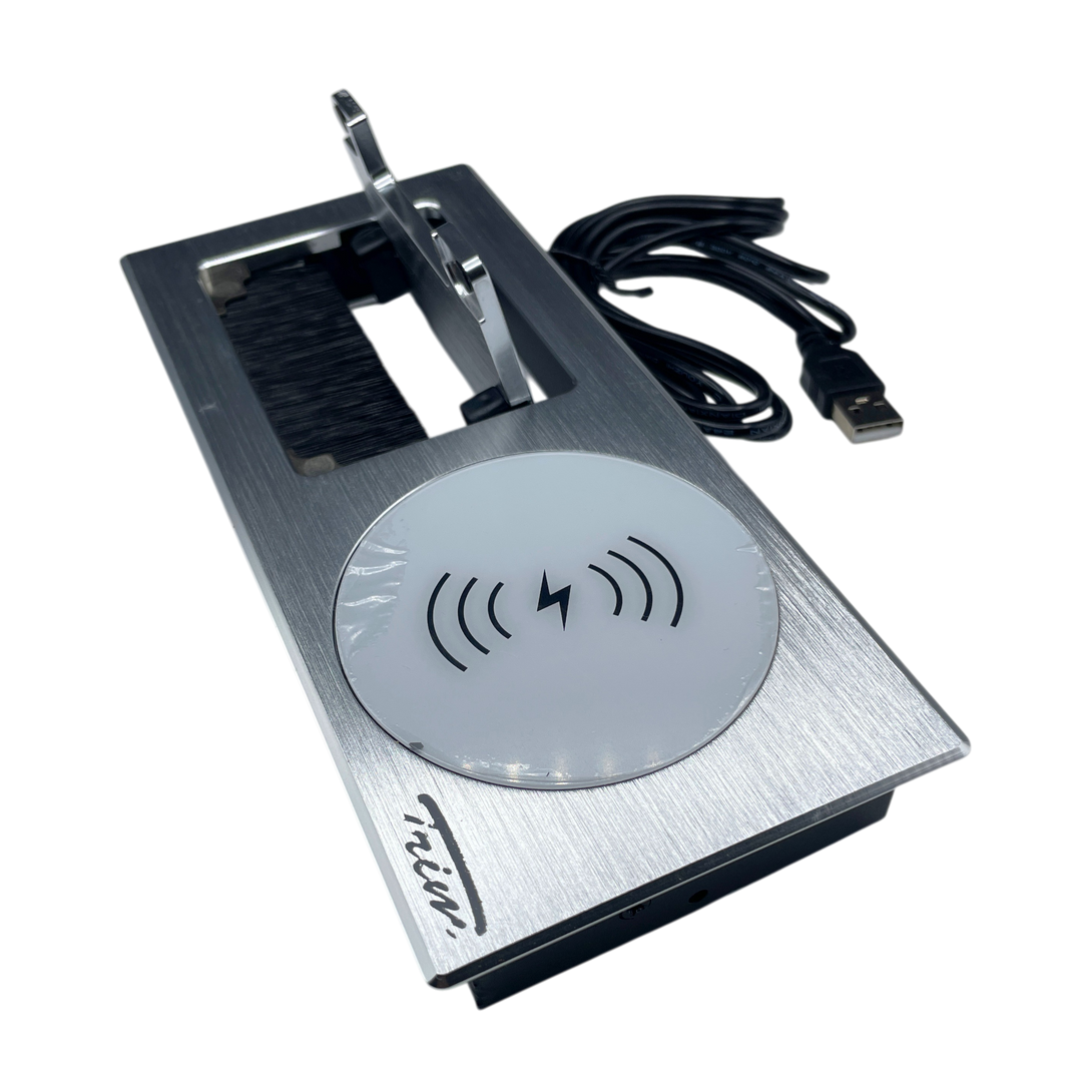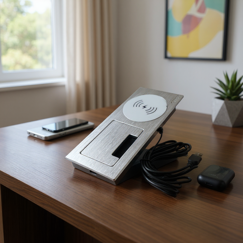 - Corporate Offices & Workstations: wireless phone charging and clean cable access.