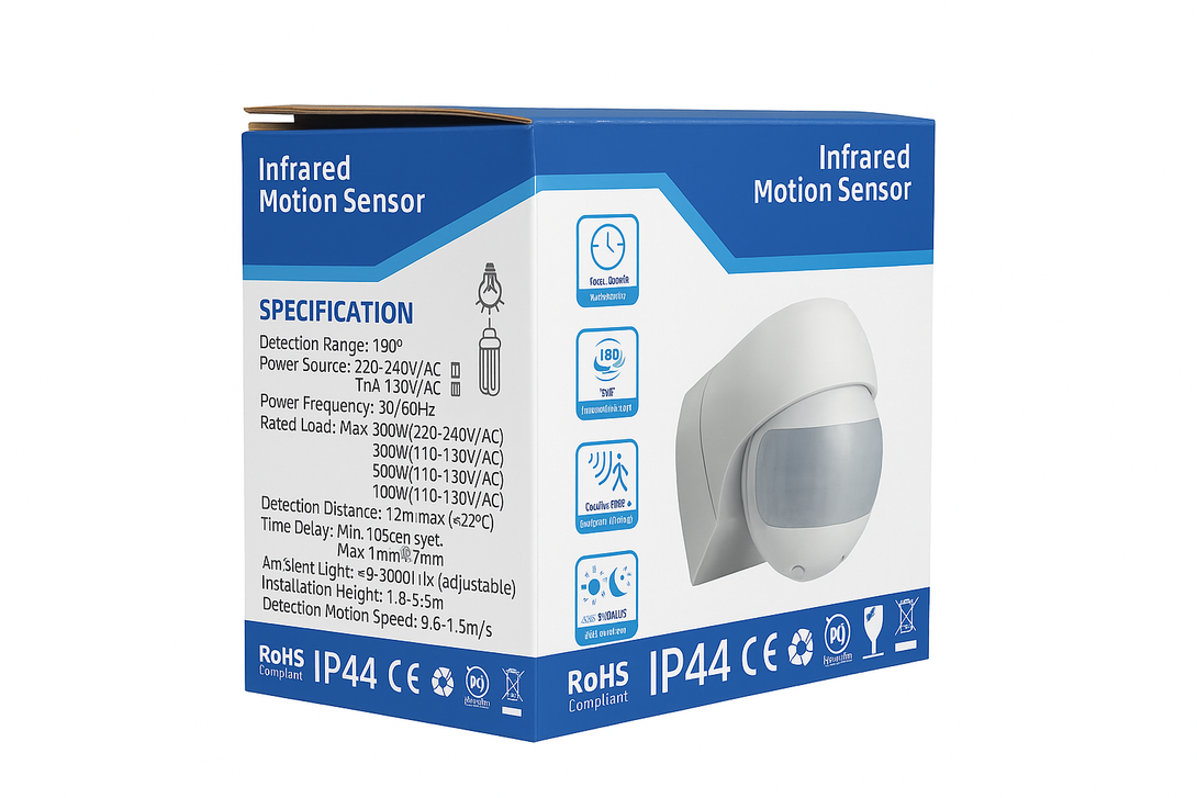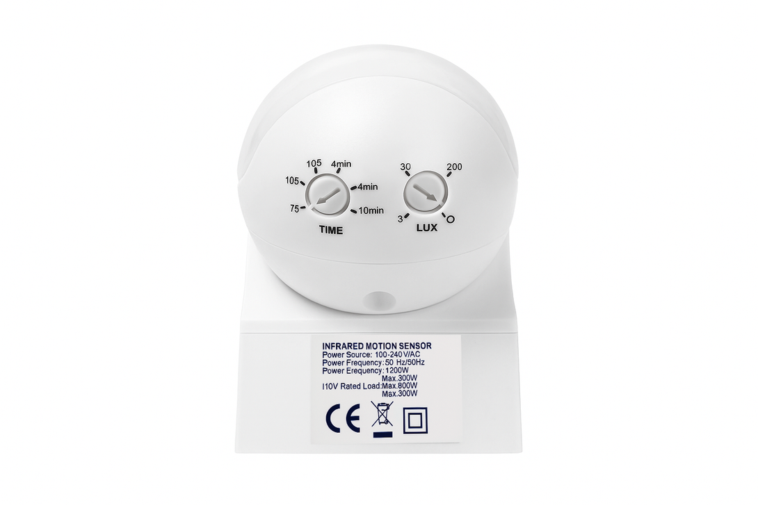 Automatically control your lighting and improve energy efficiency with this intelligent Infrared Motion Sensor. Designed for both indoor and sheltered outdoor use, this PIR sensor features a 180° wide detection angle, up to 12 meters range, and adjustable settings for time and light sensitivity.