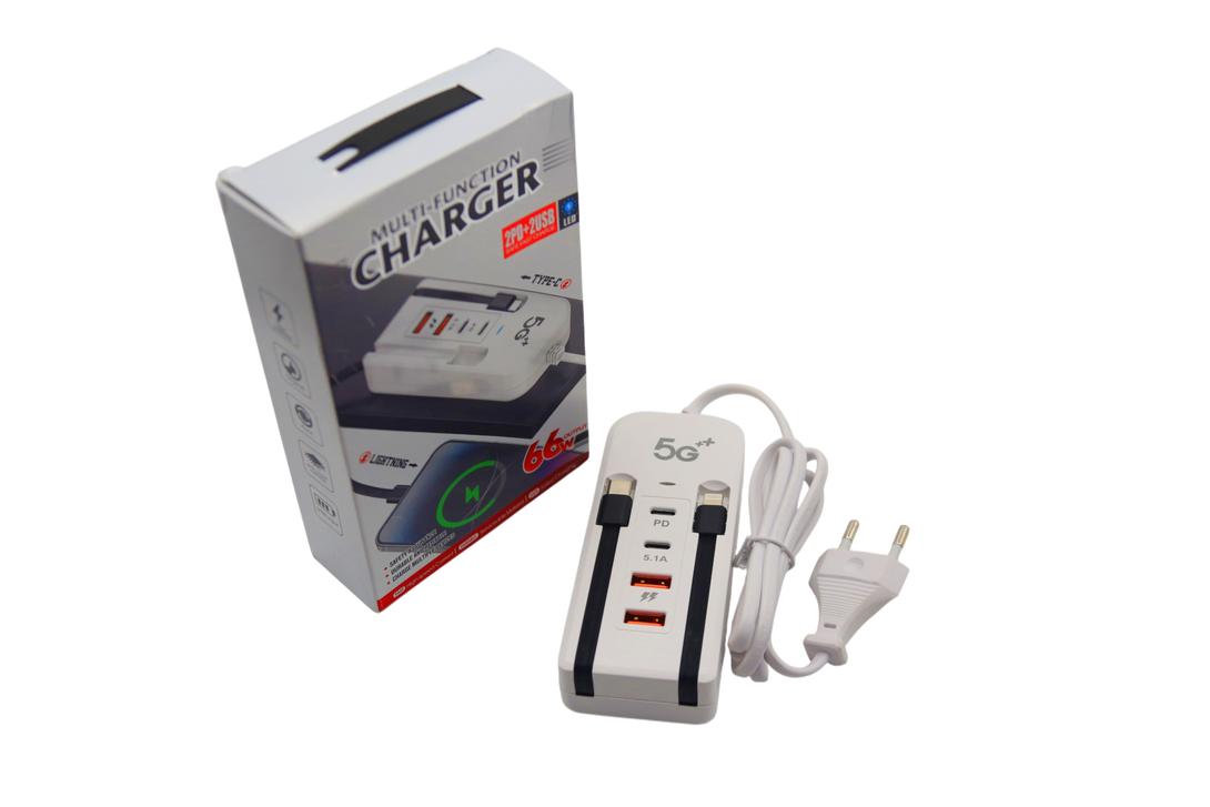 Say goodbye to slow charging and tangled cords. This Multi-Function Fast Charger is the perfect all-in-one charging solution for home, travel, or office use. Built with advanced 5G technology, it delivers high-speed, efficient charging to all your devices.
