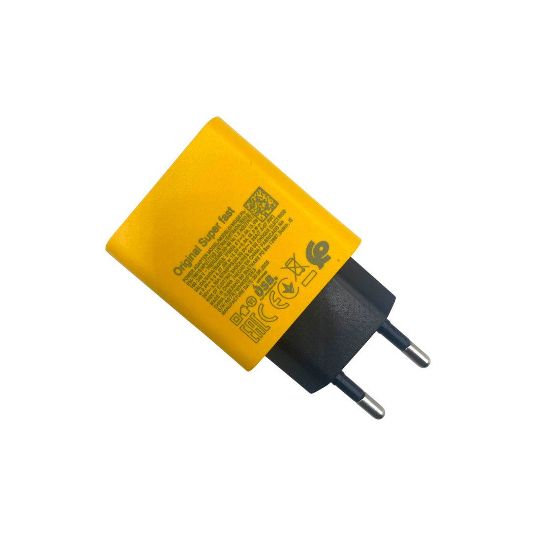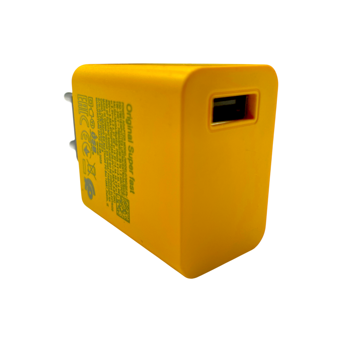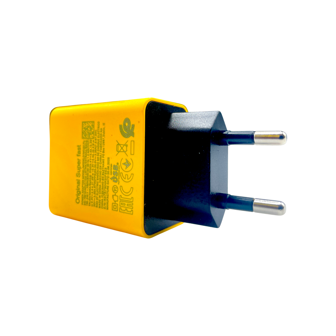Power up your devices in record time with the Original Super Fast Charger — engineered for efficiency, safety, and durability. Designed with a compact, dual-tone body featuring a vibrant yellow casing and sturdy black plug, this charger delivers both performance and style.