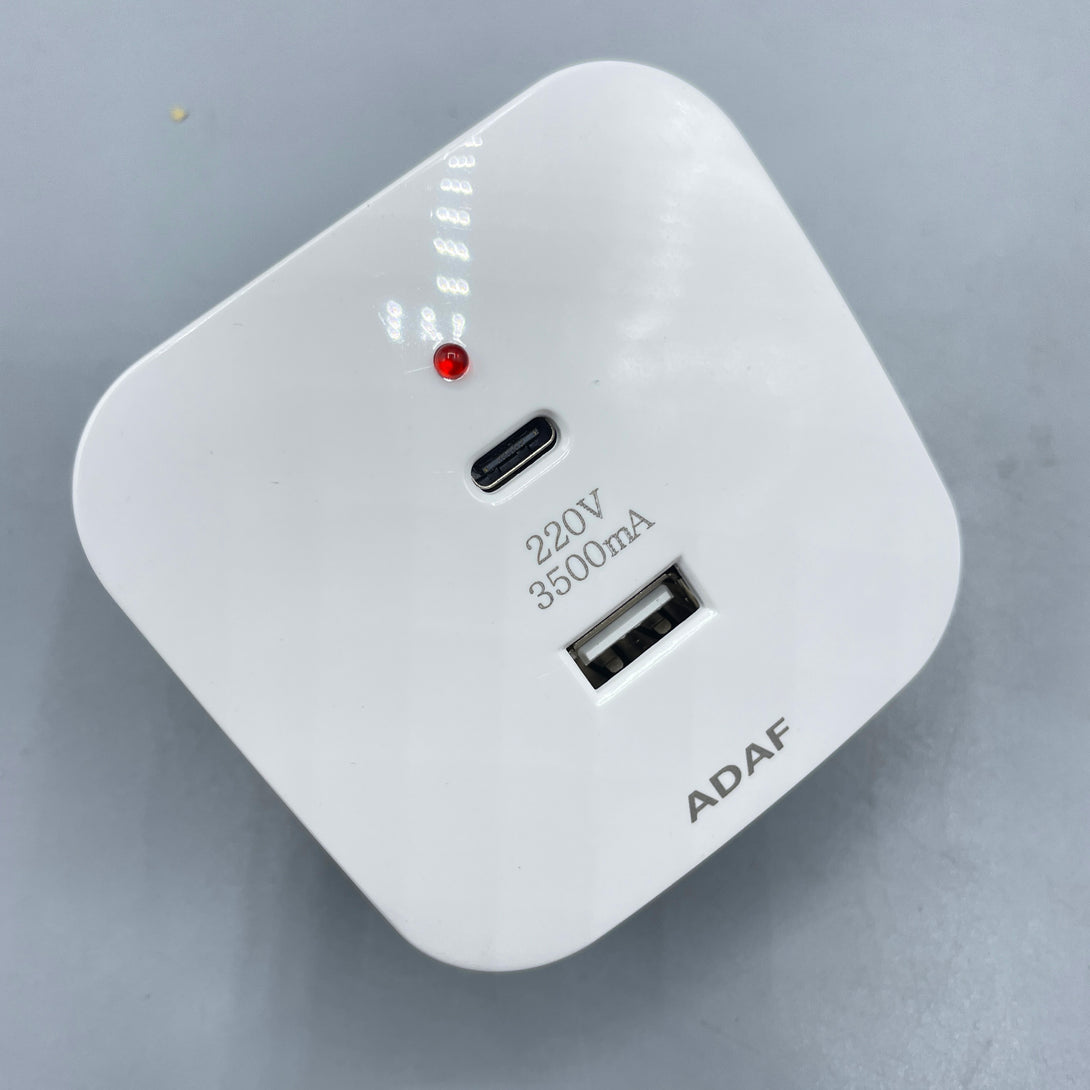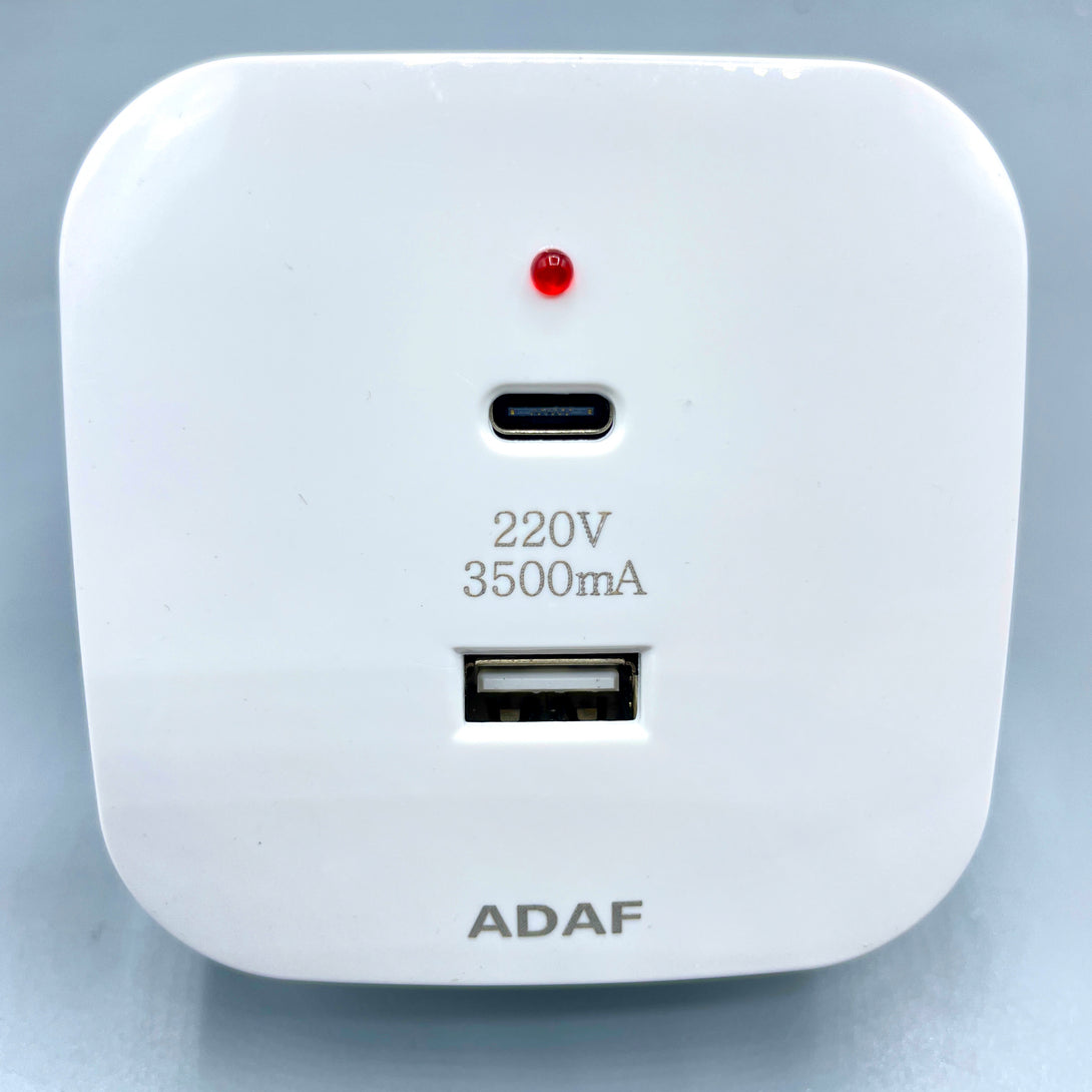 Charge smarter and faster with the ADAF Dual-Port Wall Charger, designed to keep your devices powered up efficiently. This compact and sleek charger features both a USB Type-A and a USB Type-C port, making it compatible with a wide range of smartphones, tablets, and other USB-powered devices.