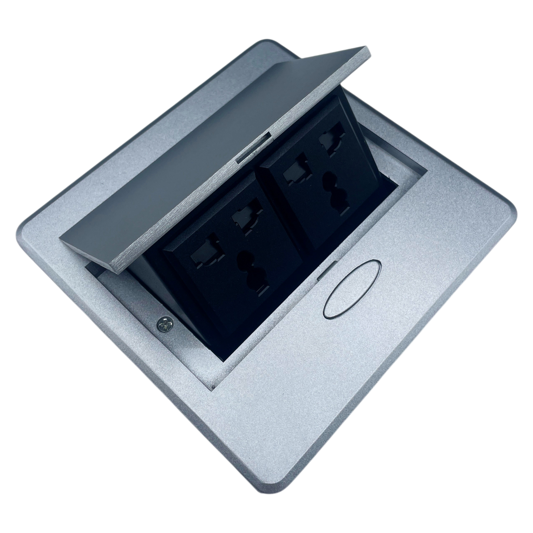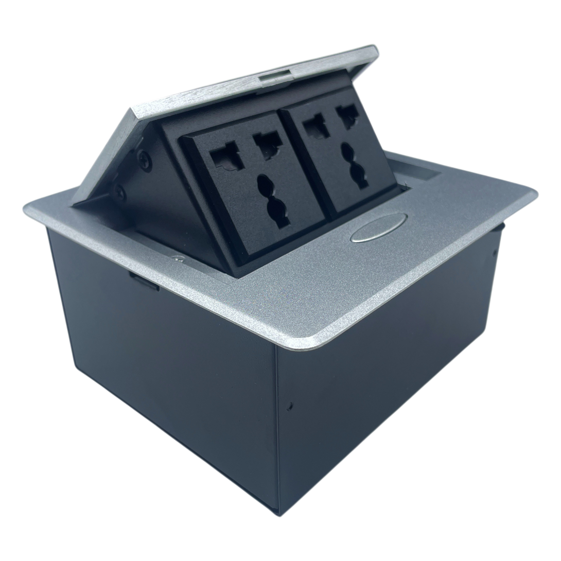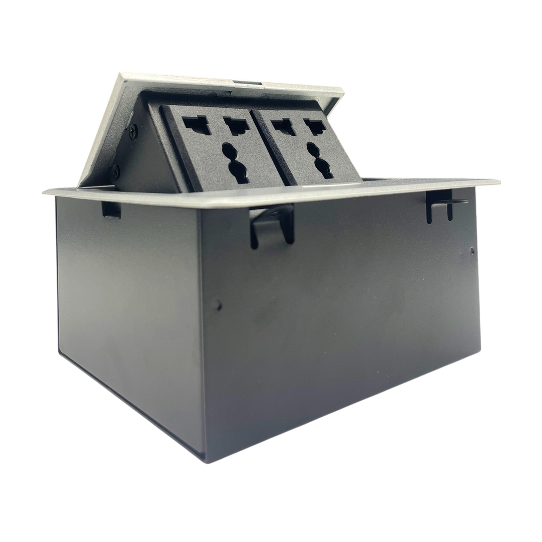 This is a Pop-Up Tabletop Power Outlet Box designed for modern office, conference, and workspace environments. It provides a concealed, space-saving solution for electrical and multimedia connectivity, combining functionality with a sleek, professional finish.