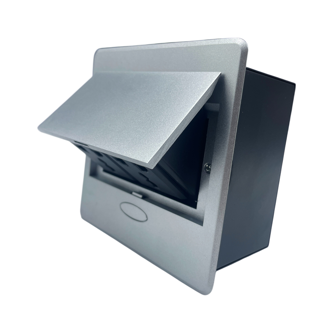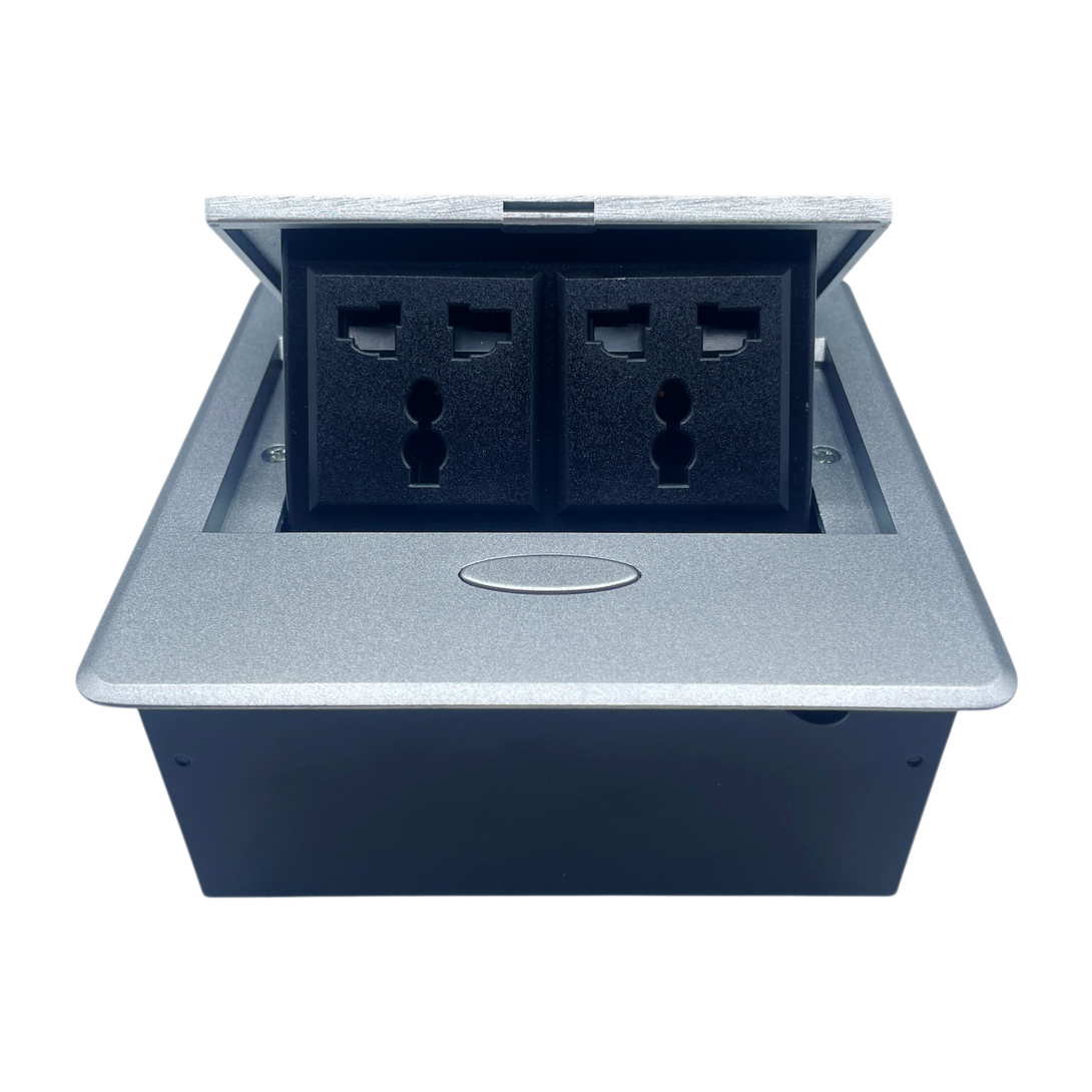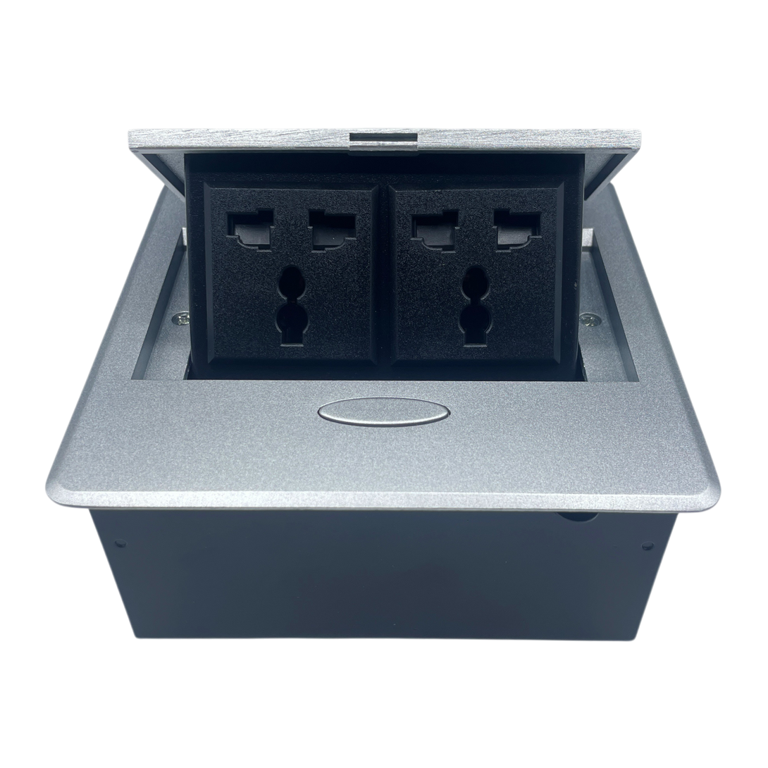This is a Pop-Up Tabletop Power Outlet Box designed for modern office, conference, and workspace environments. It provides a concealed, space-saving solution for electrical and multimedia connectivity, combining functionality with a sleek, professional finish.