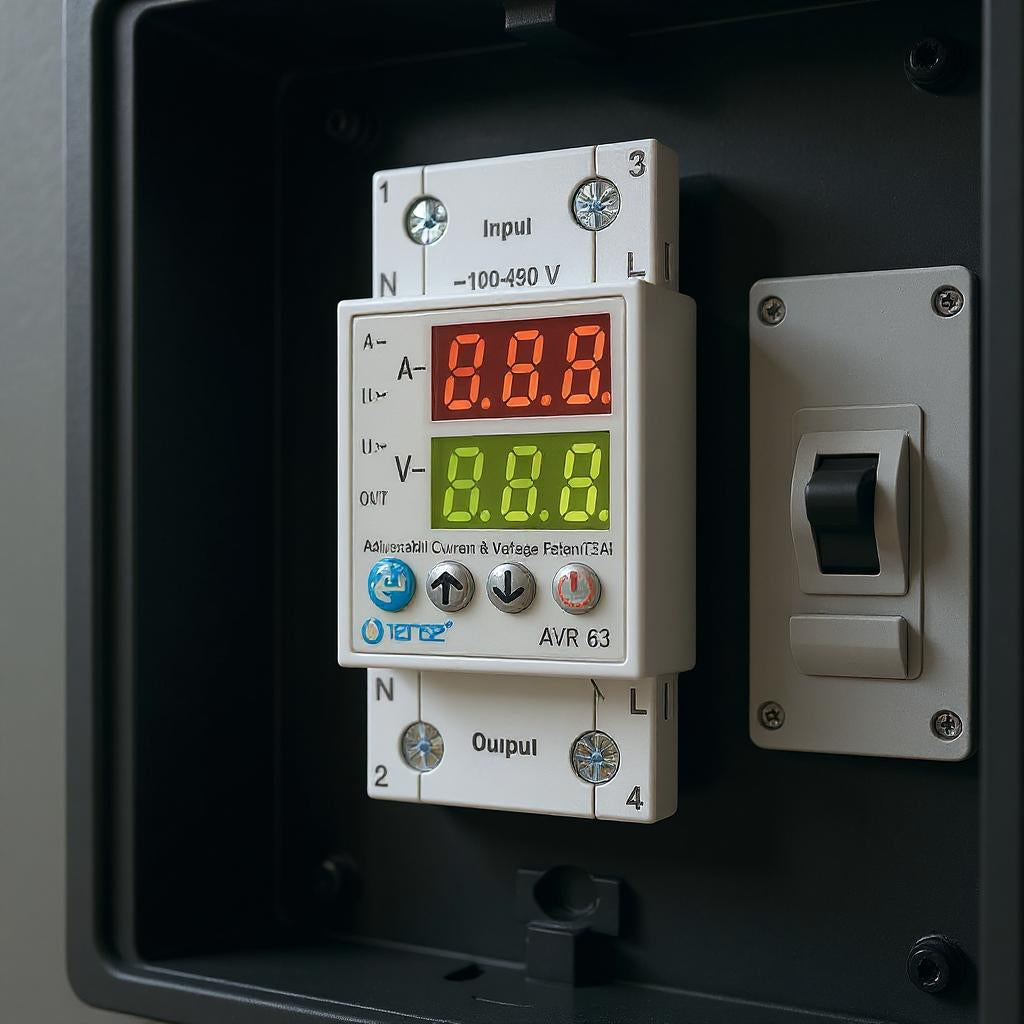 - Purpose: The device is designed to protect electrical appliances from voltage and current (ampere) fluctuations. It helps in preventing damage due to over-voltage, under-voltage, and over-current conditions.