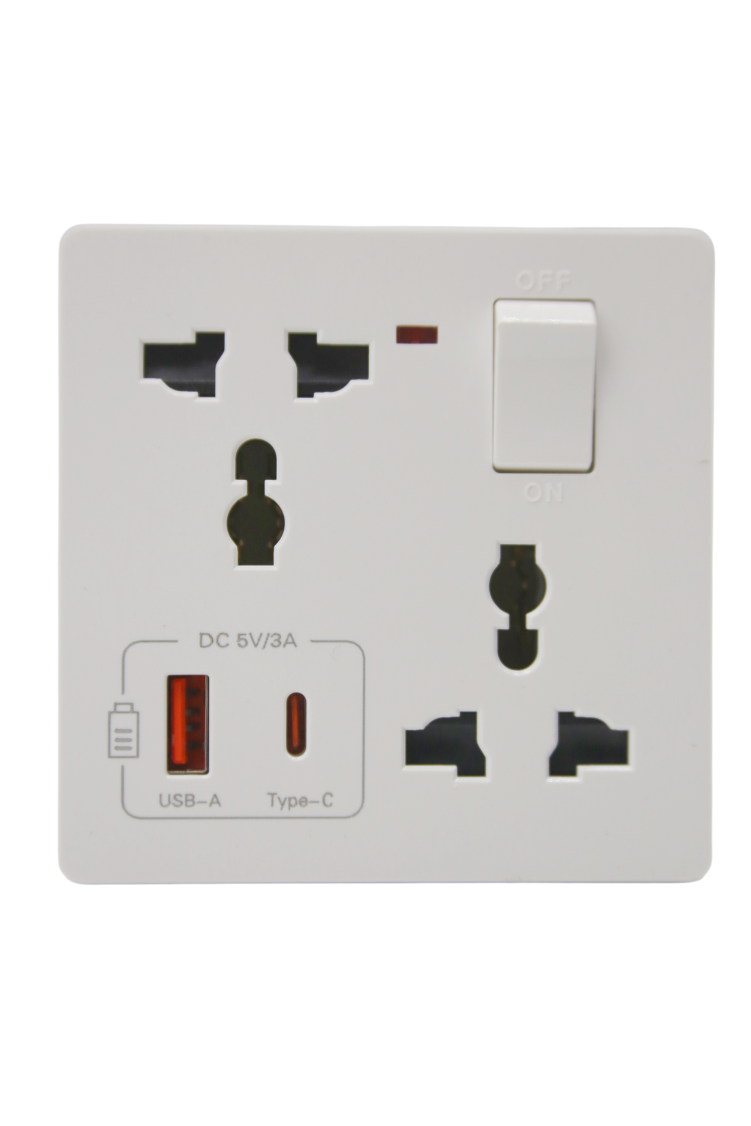 This Universal Wall Socket is designed to meet the needs of modern homes and offices. Compatible with plug types from multiple regions (US, UK, EU, AU, etc.), it includes integrated USB-A and USB-C charging ports for direct device charging without the need for adapters. Featuring a manual ON/OFF switch and safety protections, this wall socket is ideal for a clutter-free and efficient charging setup.
