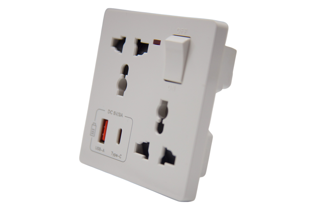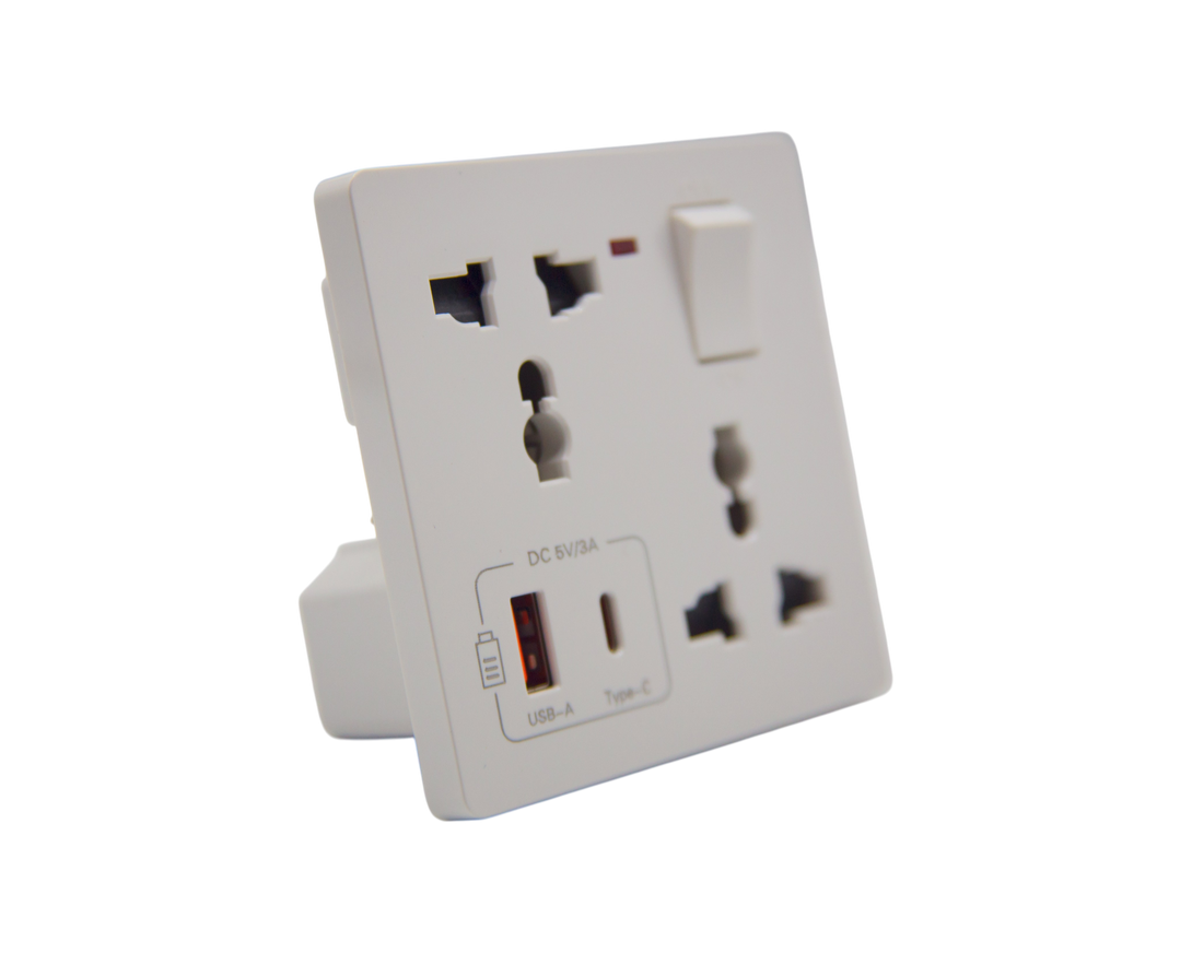 Universal Wall Socket with USB-A & USB-C Ports – 5V/3A Fast Charging