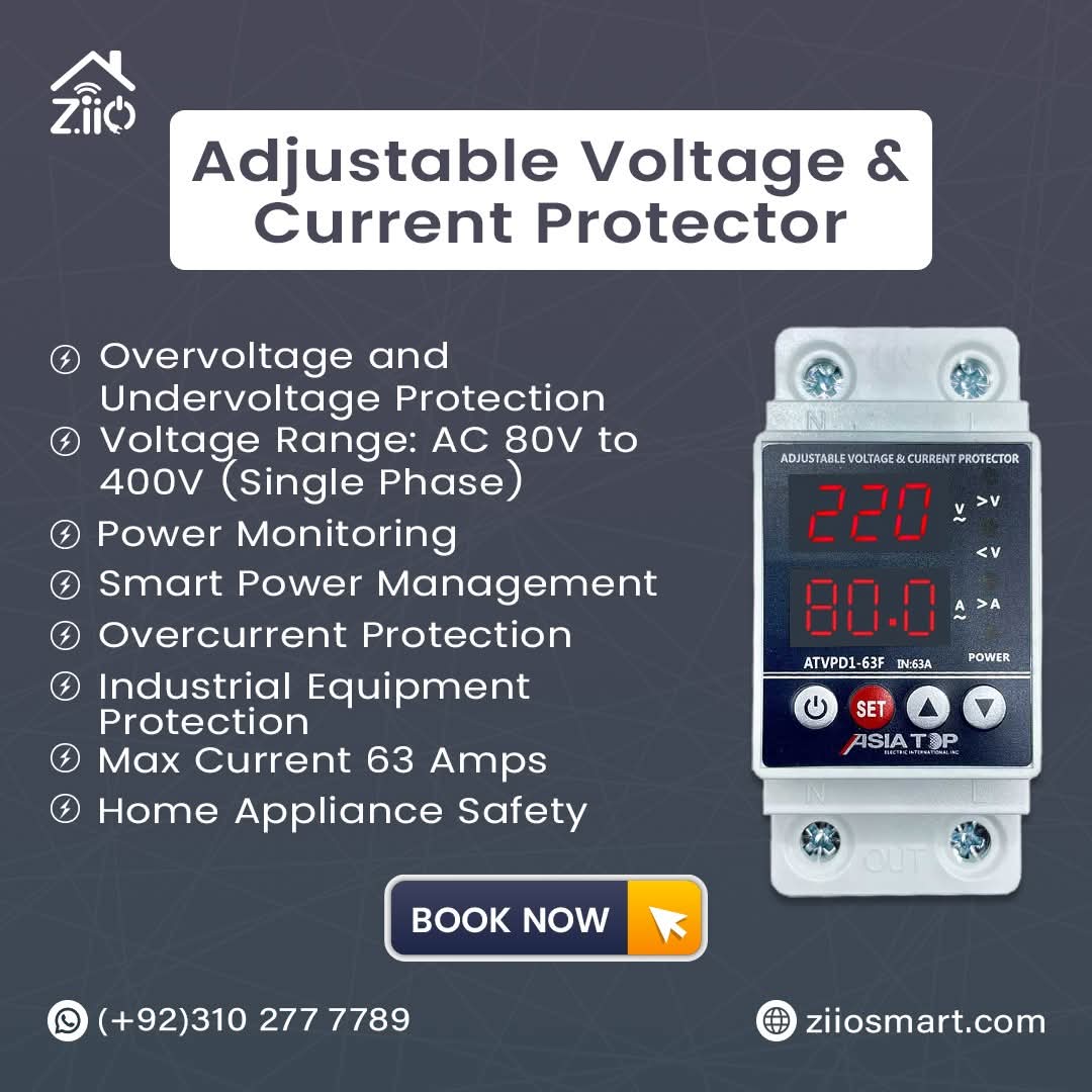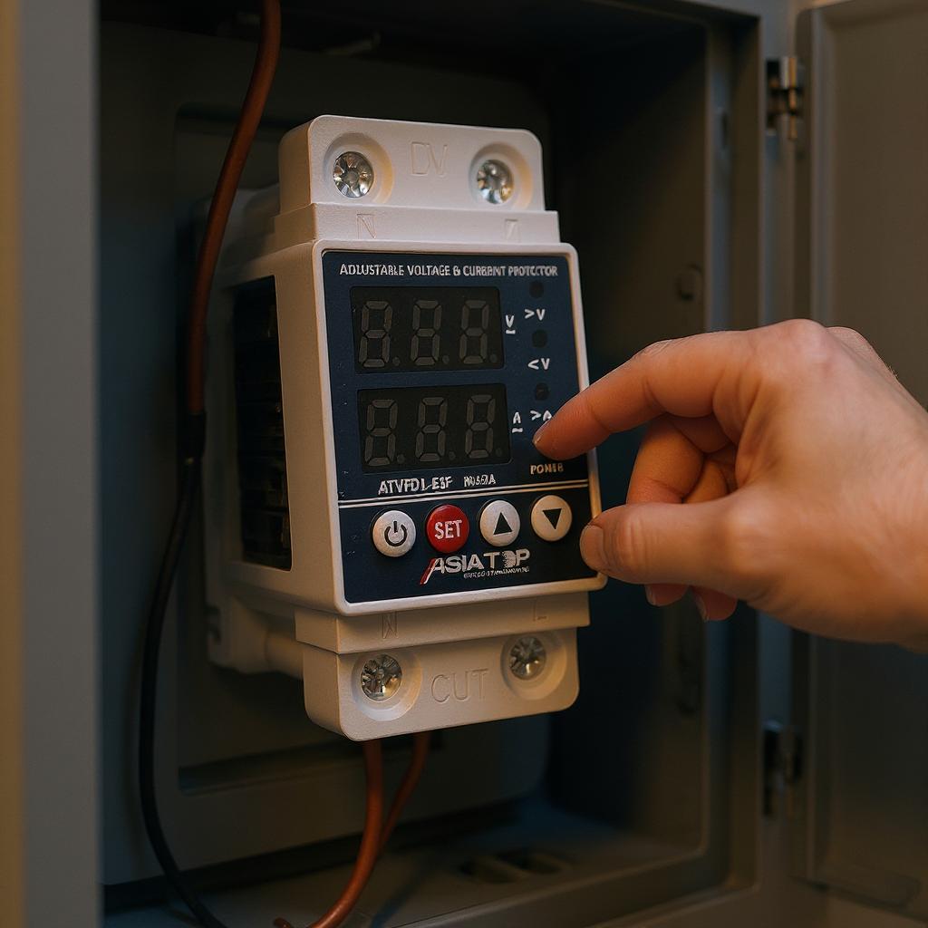 Protect your electrical appliances and systems with the ASIA-TOP Adjustable Voltage & Current Protector. This advanced device is designed to monitor, display, and regulate voltage and current levels in real-time, ensuring your equipment operates within safe parameters.