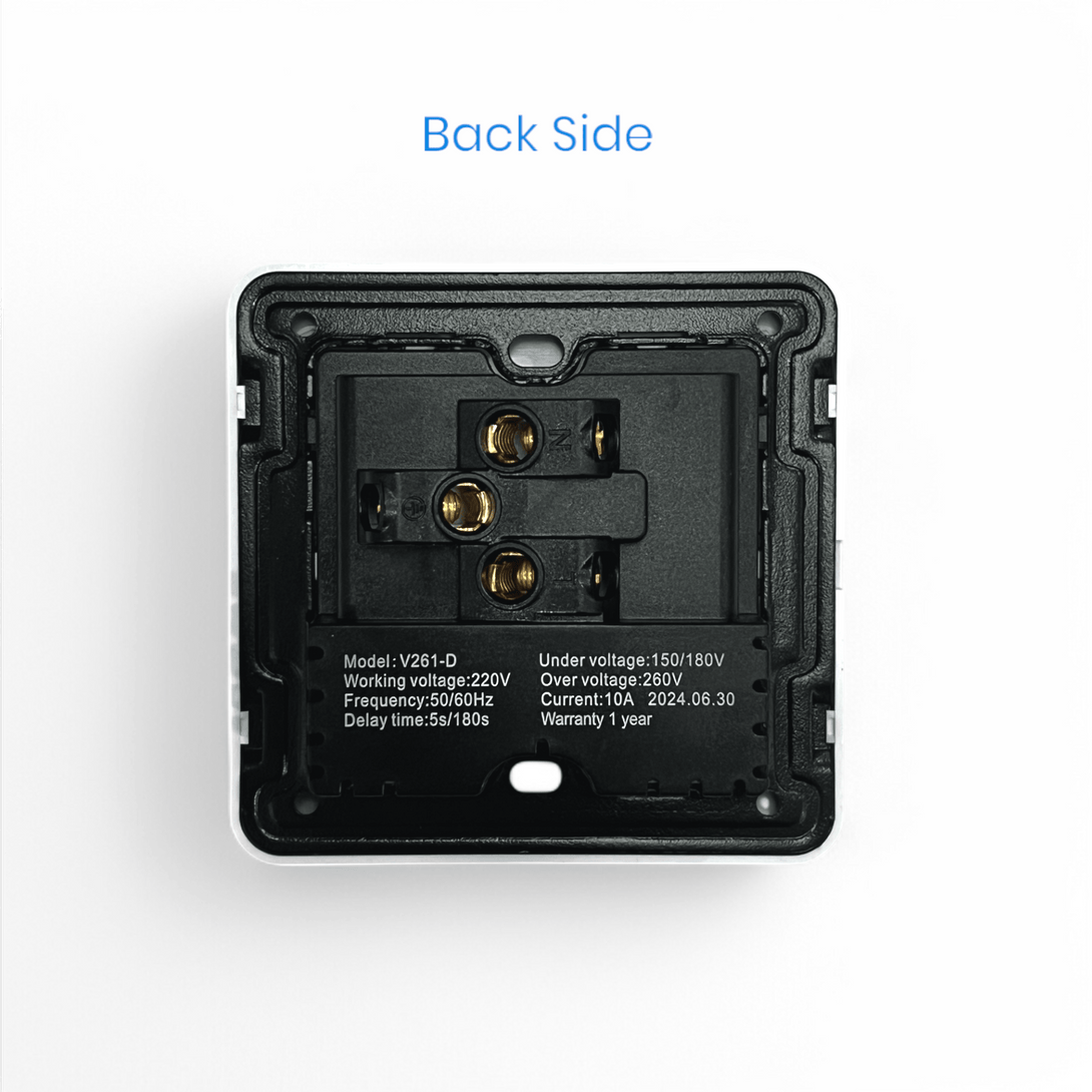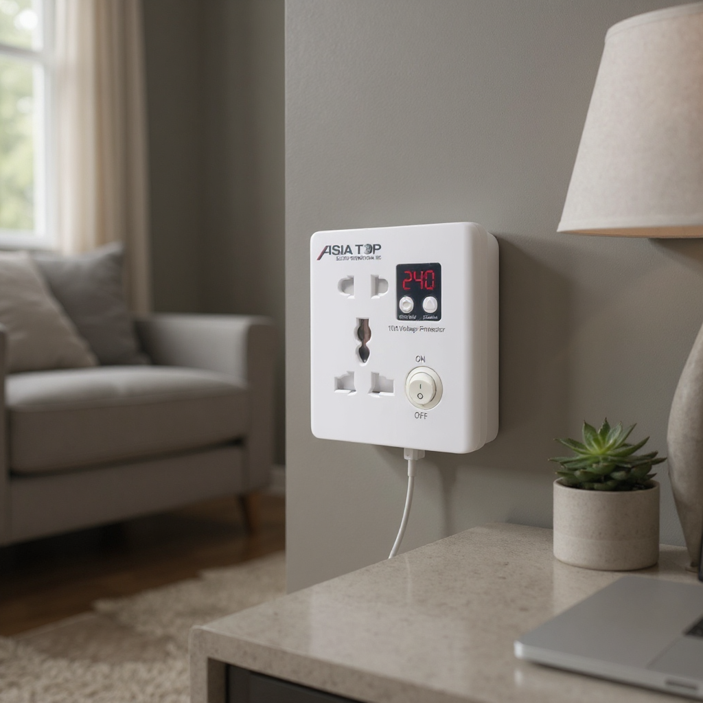 This device is used to protect electrical appliances from voltage fluctuations by automatically disconnecting the power supply if the voltage goes beyond the set safe range. It helps prevent damage to equipment from under-voltage or over-voltage situations.