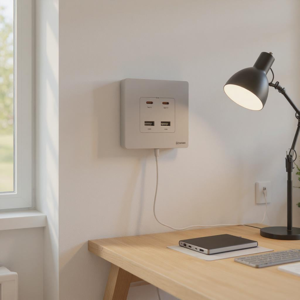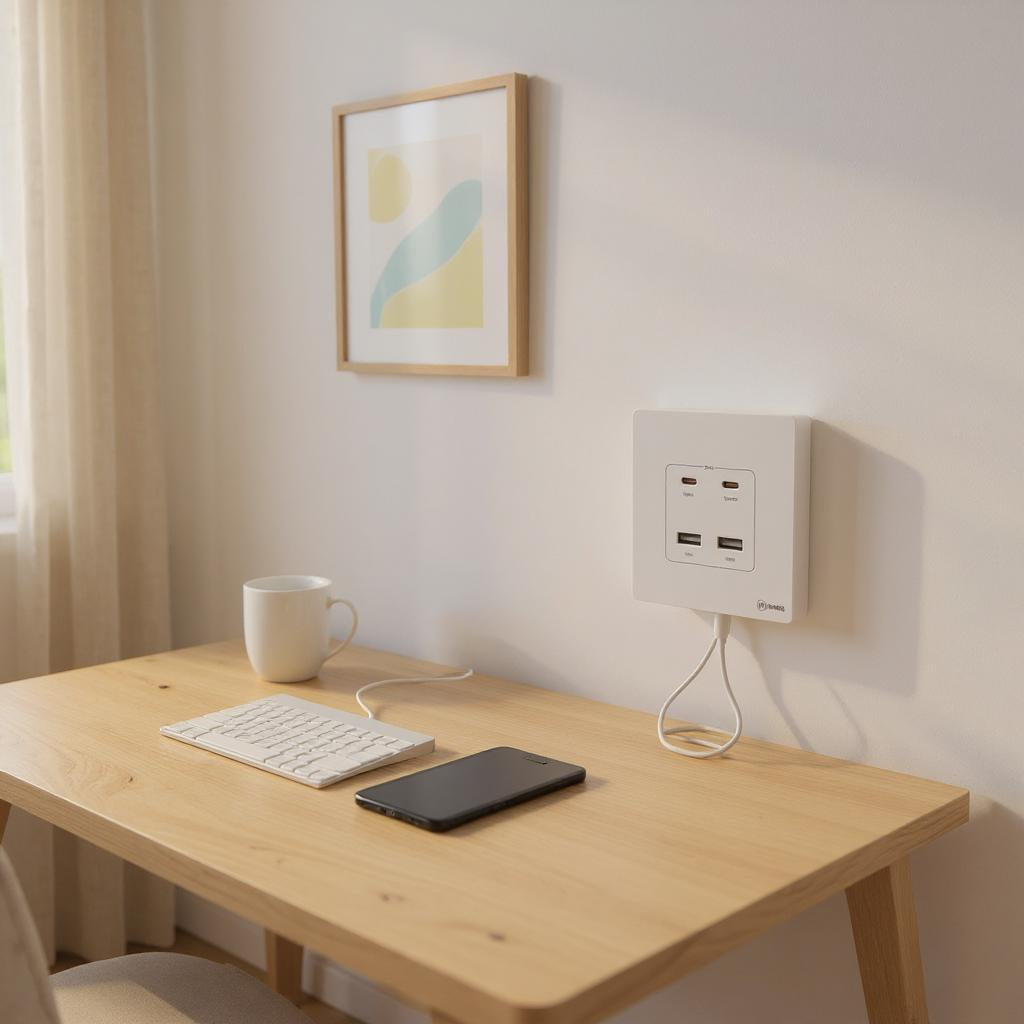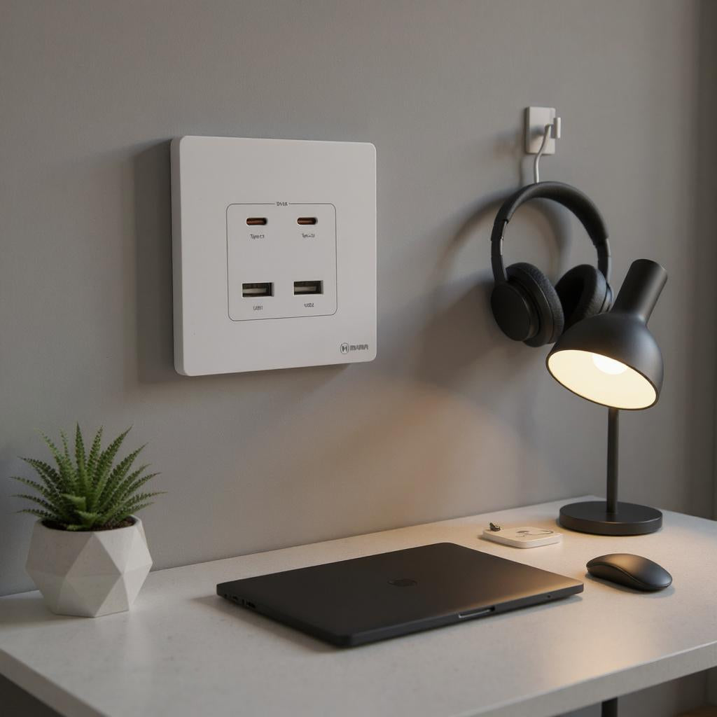Charge all your devices from one clean, built-in solution. This wall-mounted USB charging socket is designed to streamline your space while powering multiple devices at once. Ideal for homes, offices, hotels, or public areas.