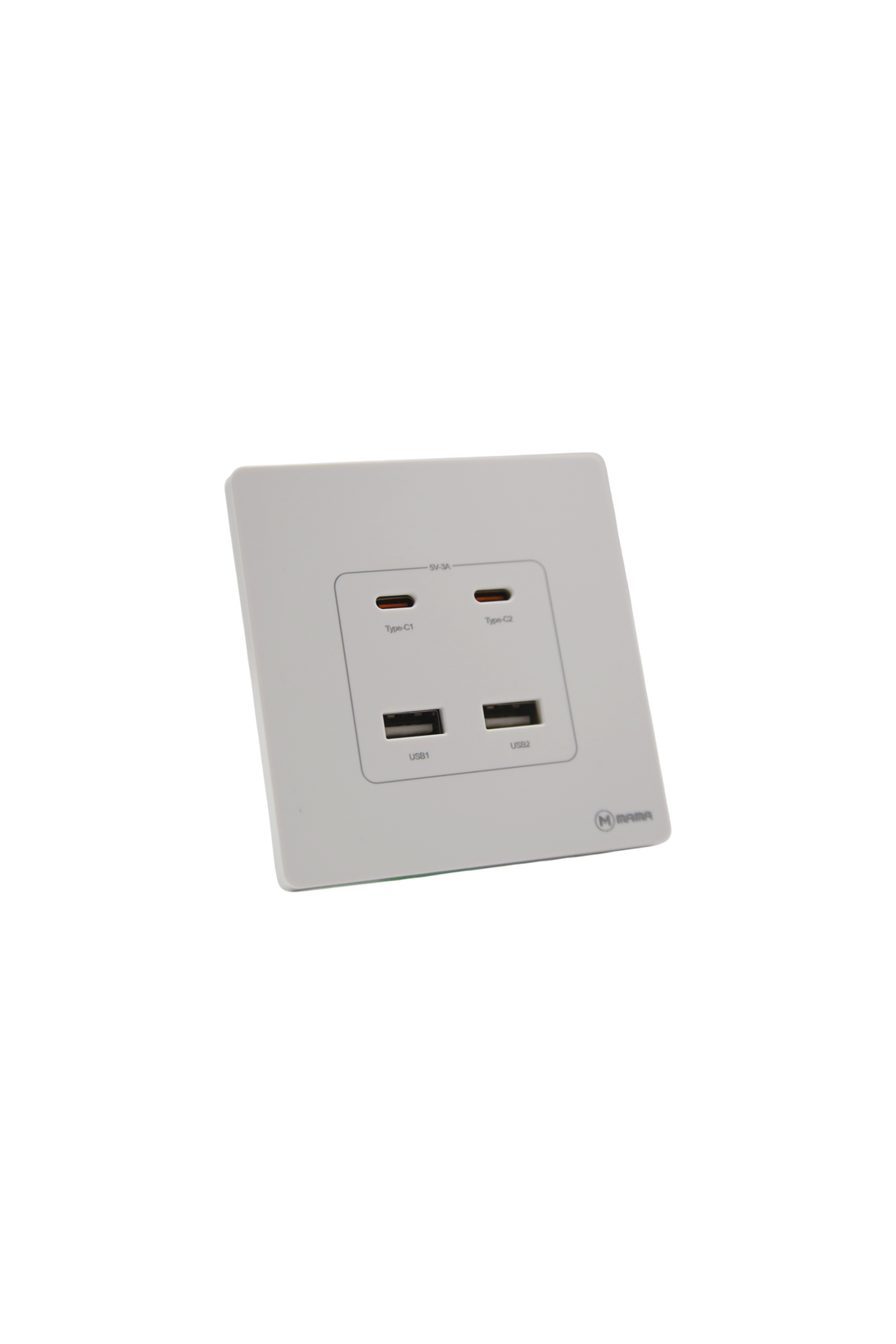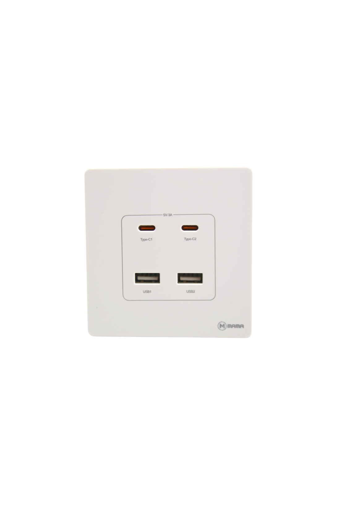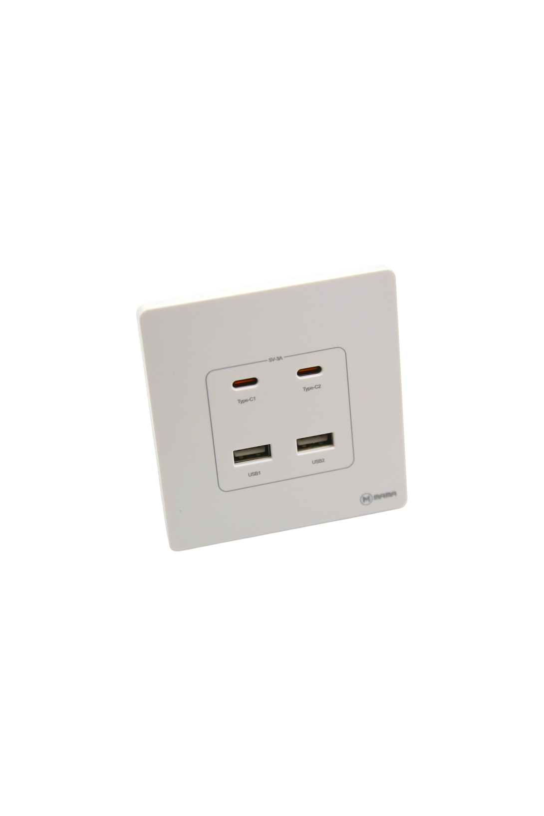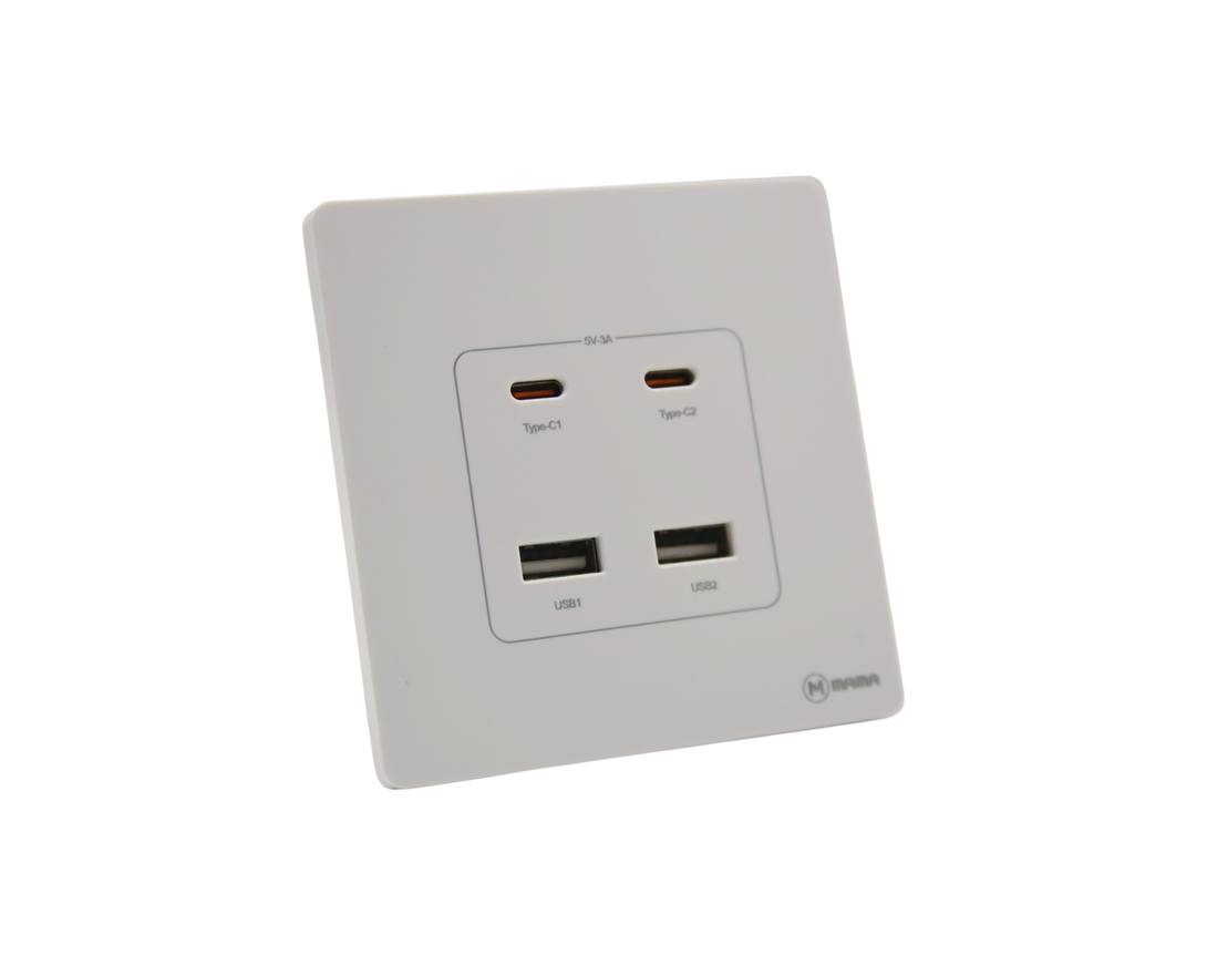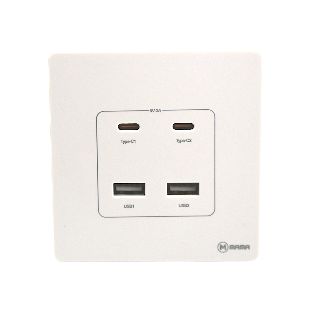 Wall-Mounted USB Charging Socket – 2x Type-C + 2x USB-A Ports | 5V/3A
